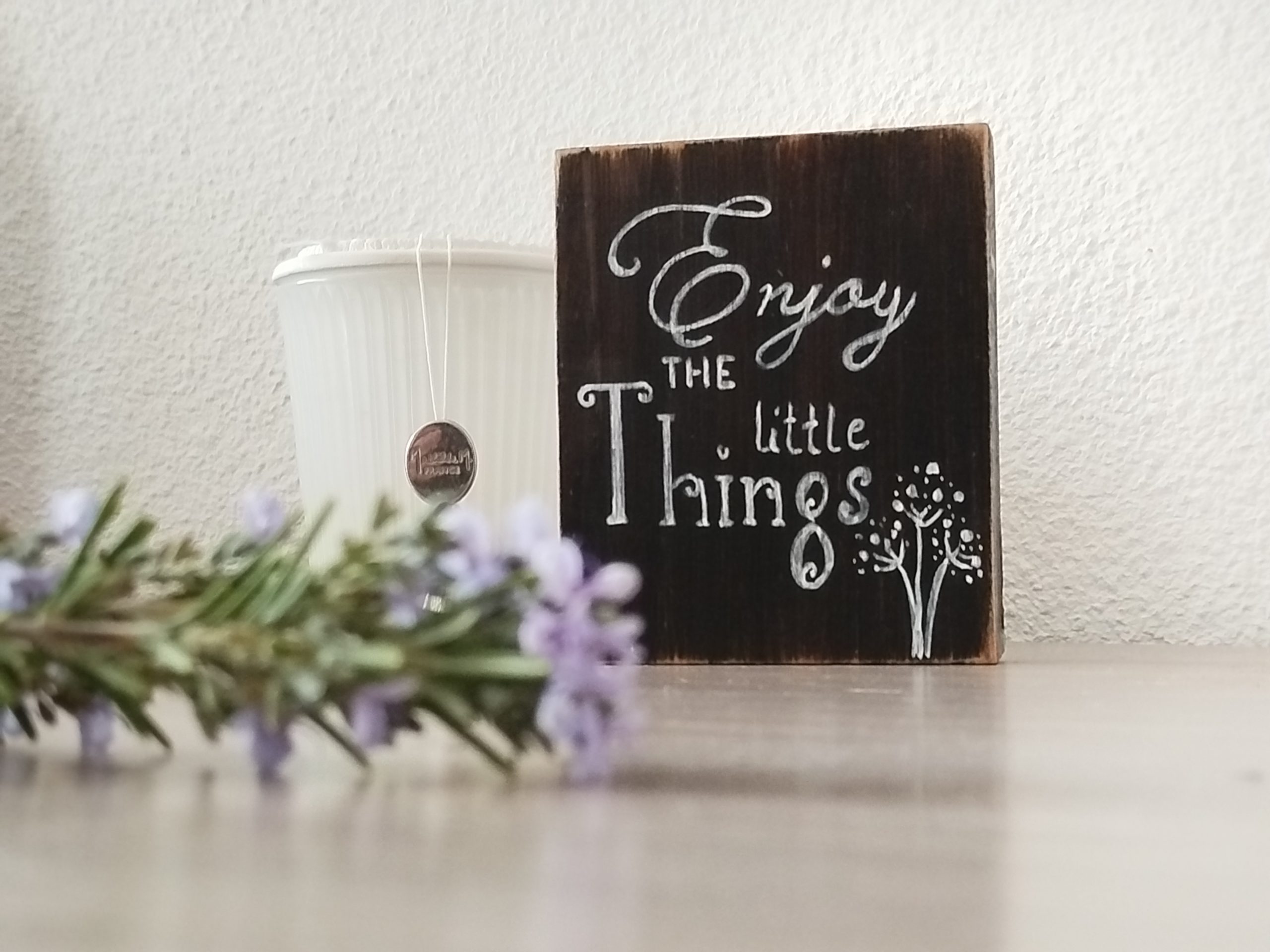 Ce TOTEM « Enjoy the Little Things » est entièrement réalisé à la main dans mon atelier près de Bordeaux. Il s’agit d’un bloc de bois de pin rustique, scié, poncé et peint avec soin. Sur fond noir, le lettrage blanc est peint au pinceau, sans pochoir, pour un rendu authentique et vivant.